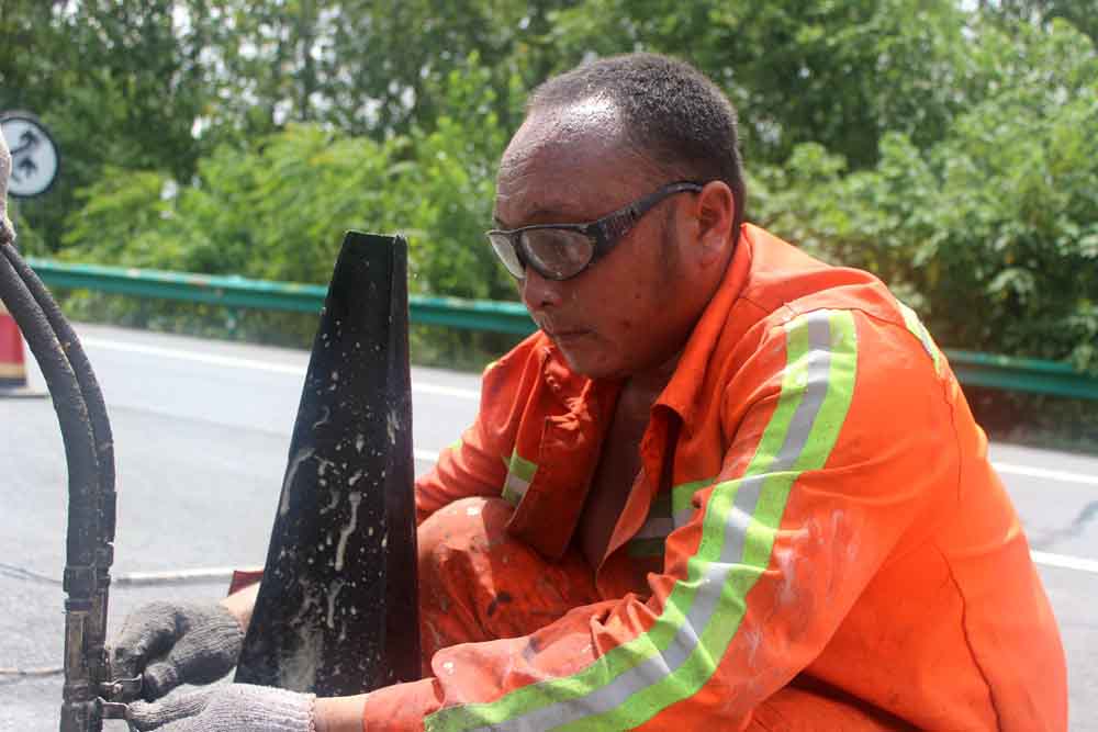 温度越高,越是沥青路面修补养护的好时机。路面不及时清扫,事故垃圾、抛洒物、白色垃圾等就会影响行车安全;绿化带不及时修剪,就会遮挡标志牌、轮廓标,影响司机判断;汛期边沟、涵洞、排水沟不及时清理,极易堵塞排水设施,影响路基稳定性。在路面温度超过50℃的环境下,补沥青、扫路面、修绿植、清边沟,交投人秉承“安全责任高于天”的意识,不畏热浪,坚守职责,全力保障道路安全畅通。