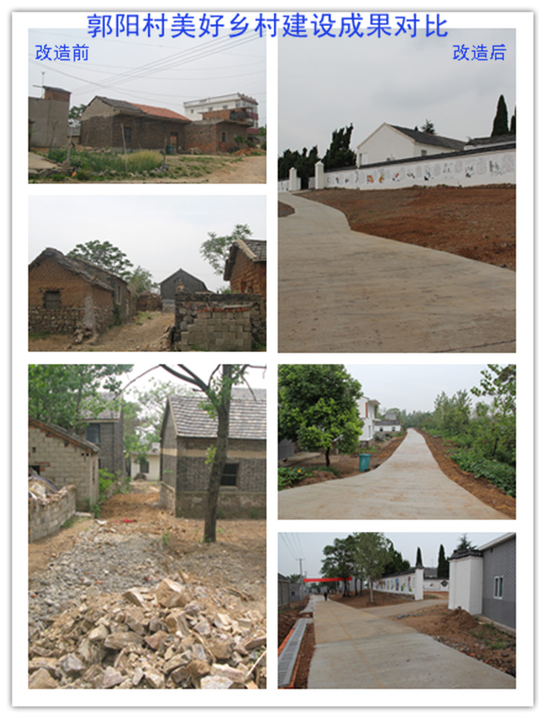 在我们与古城镇郭阳村开展村企帮扶共建的短短两个月时间内,在集团公司与古城镇政府的共同努力下,该村的村容村貌发生了巨大变化。村口的文化广场已竣工落成,徽派特色的园林小品点缀其间,有效提升了村庄文化品位;原本破旧的民居经过立面改造、修缮,面貌焕然一新,宛如乡间别墅;公司援建的绕村主干道路面平整、畅通,原来雨天不能通行的乡村土路现在机动车辆也能通行无阻,彻底解决了村民“雨天一身泥,晴天一身灰”的交通难题。通过村庄新旧面貌的对比,我们明显感受到美好乡村建设的成果:修整一新的村庄与美丽的岱山湖遥相呼应,环境更显清新优美,村庄里鸡犬相闻间透着一丝静谧与祥和,村民的笑容表达了对我们推进美好乡村建设辛勤付出的赞许。在今后的村企共建中,集团公司将尽力对郭阳村的建设发展给予支持,同时多为群众办实事、办好事,努力把群众路线落实到实处。