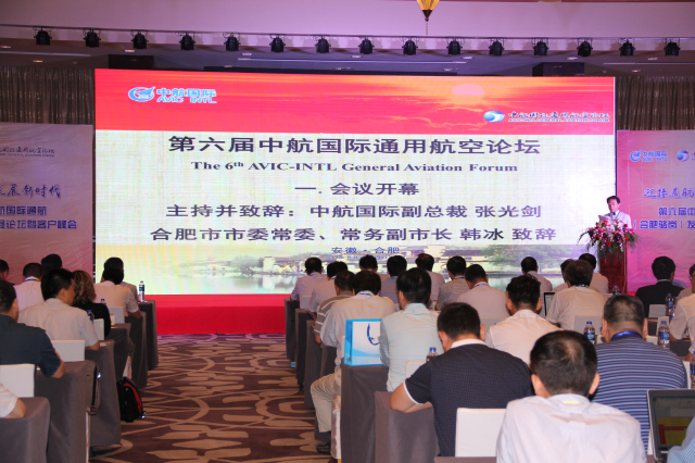 8月4-5日,第六届中航国际通航(合肥骆岗)发展论坛暨客户峰会在安徽合肥隆重召开。中航国际、合肥市政府、国家部委办局领导,全国通航厂商、运营商和服务商等200余位通航领域人士参加了会议。会议还特邀美国著名直升机企业罗宾逊公司及美国经济型公务航空相关制造商、运营商和维护保障商等出席。合肥市市委常委、常务副市长韩冰出席大会并致辞。